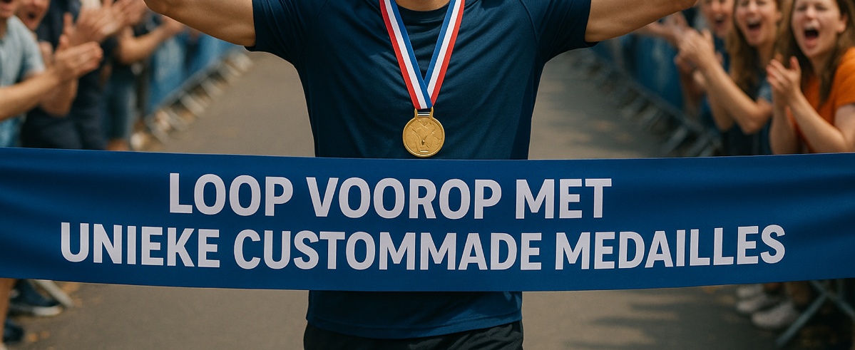 Lichte medaille, volledig custommade in jouw huisstijlvormen en afbeeldingen.De kers op de taart van het evenement!